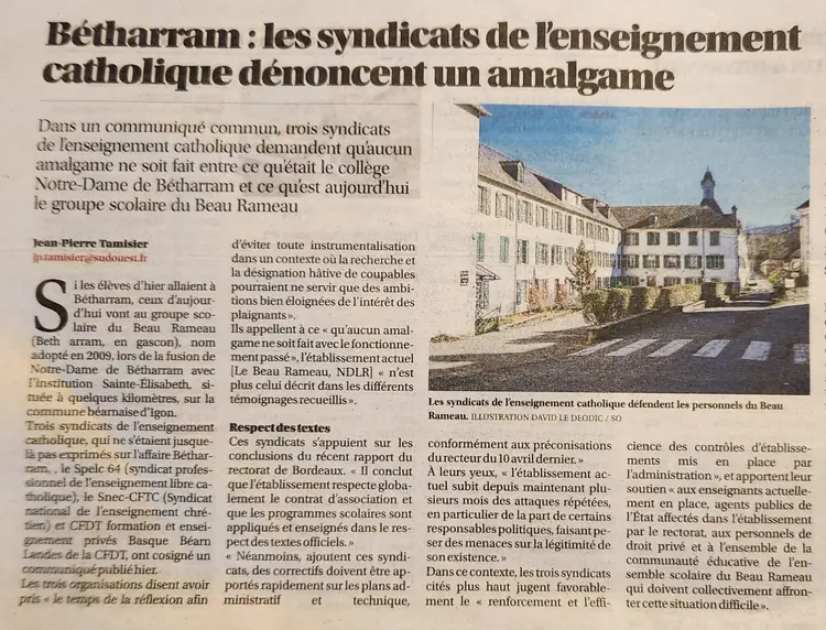 Communiqué de presse : Affaire Bétharram, les syndicats de l’établissement s’expriment